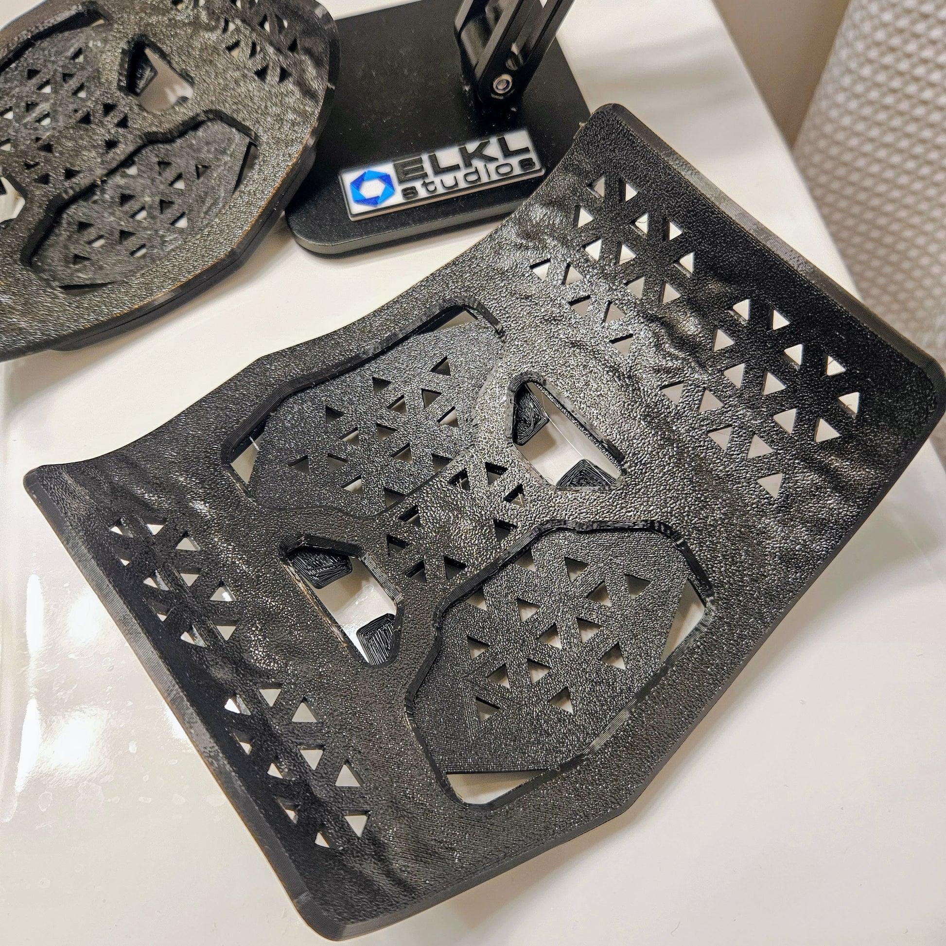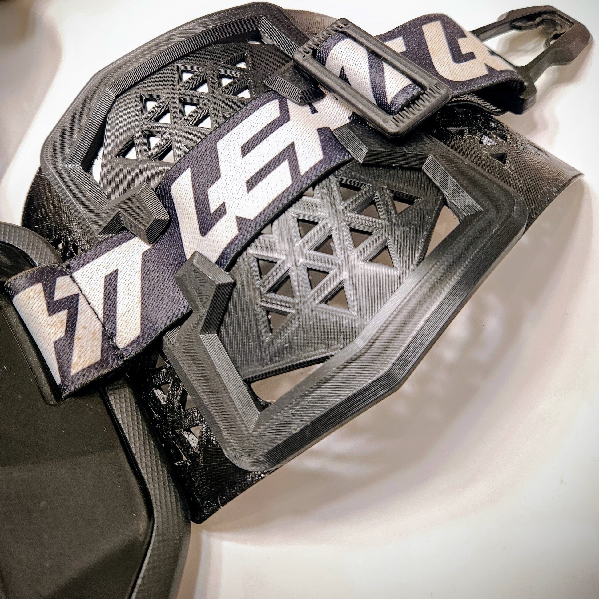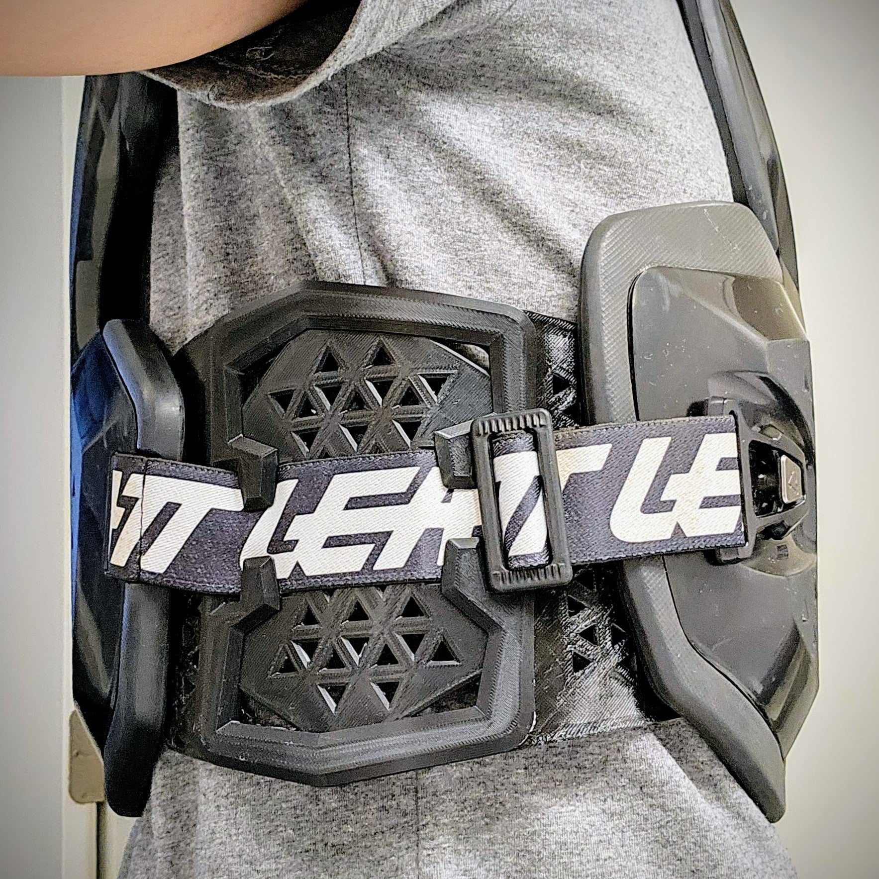 Add flank protection to your existing body armour via these add-on panels. Made of rigid PETG on the outside and flexible TPU on the inner layer. The hard shell measures about 4" wide by 6" tall, while the inner soft layer extends the width to about 7". Fits on 1.5" straps. Designed to match the style of Leatt chest armour.